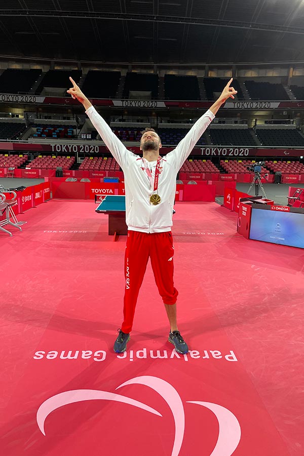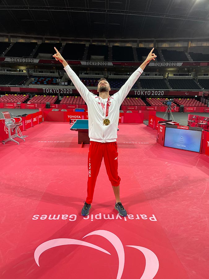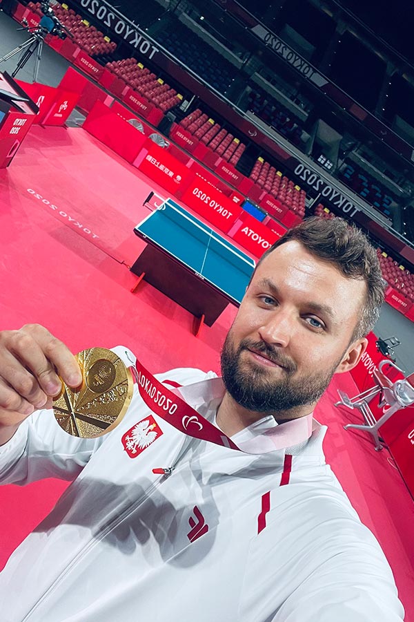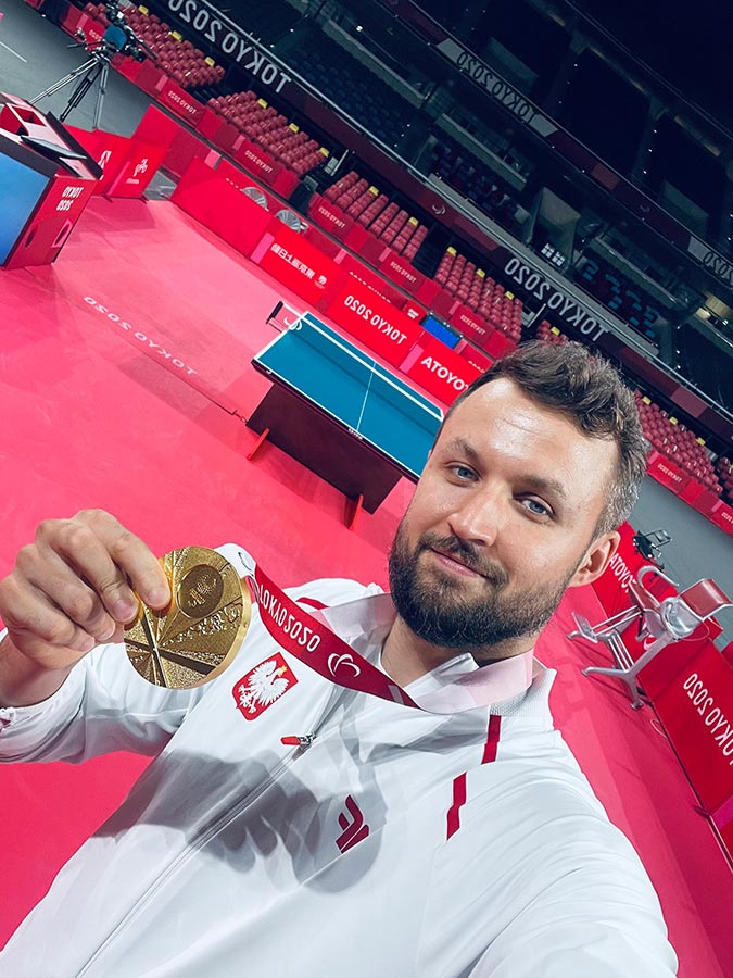 Z powodu mojego wypadku jestem uprawniony do reprezentowania Polski w tenisie stołowym osób niepełnosprawnych gdzie udało mi się zakfalifikować na 3 Igrzyska Olimpijskie - w Londynie i Tokio sięgnąłem po złoto a w Rio po srebrny medal.